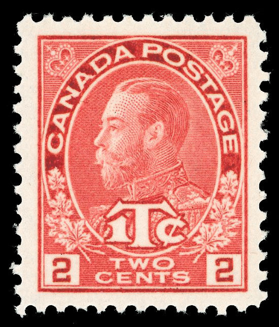 Frais timbre sans charnière du Roi Goerge V - Taxe de Guerre (1916) 2¢ + 1¢ - Matrice 1 avec la nuance plus rare rose-rouge !