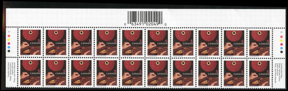 canada stamp 1677ii weaving 5 2001 PLATE BLOCK OF 20