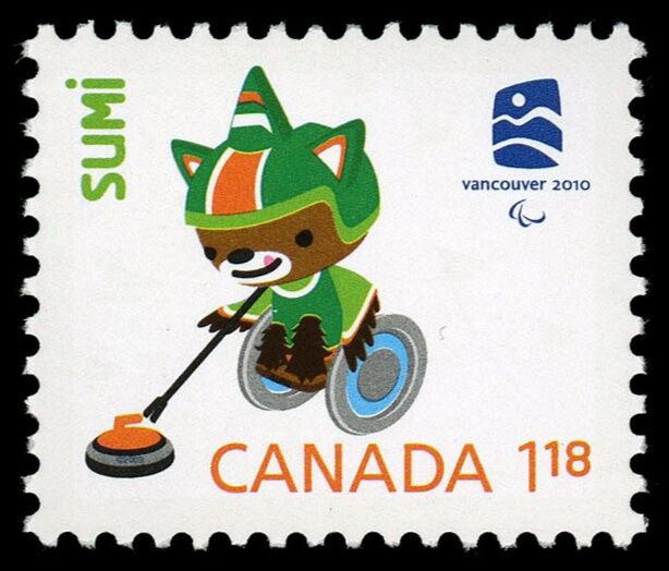 Sumi, Mascotte, 1.18$, simple du feuillet souvenir, timbre du Canada # 2305d, de la série des Emblèmes et mascottes des Jeux d'hiver de Vancouver 2010.