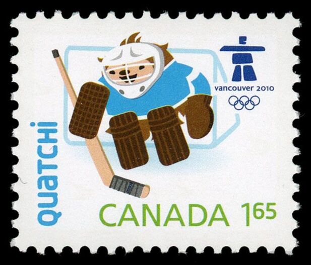 Quatchi, Mascotte, 1.65$, simple du feuillet souvenir, timbre du Canada # 2305e, de la série des Emblèmes et mascottes des Jeux d'hiver de Vancouver 2010.