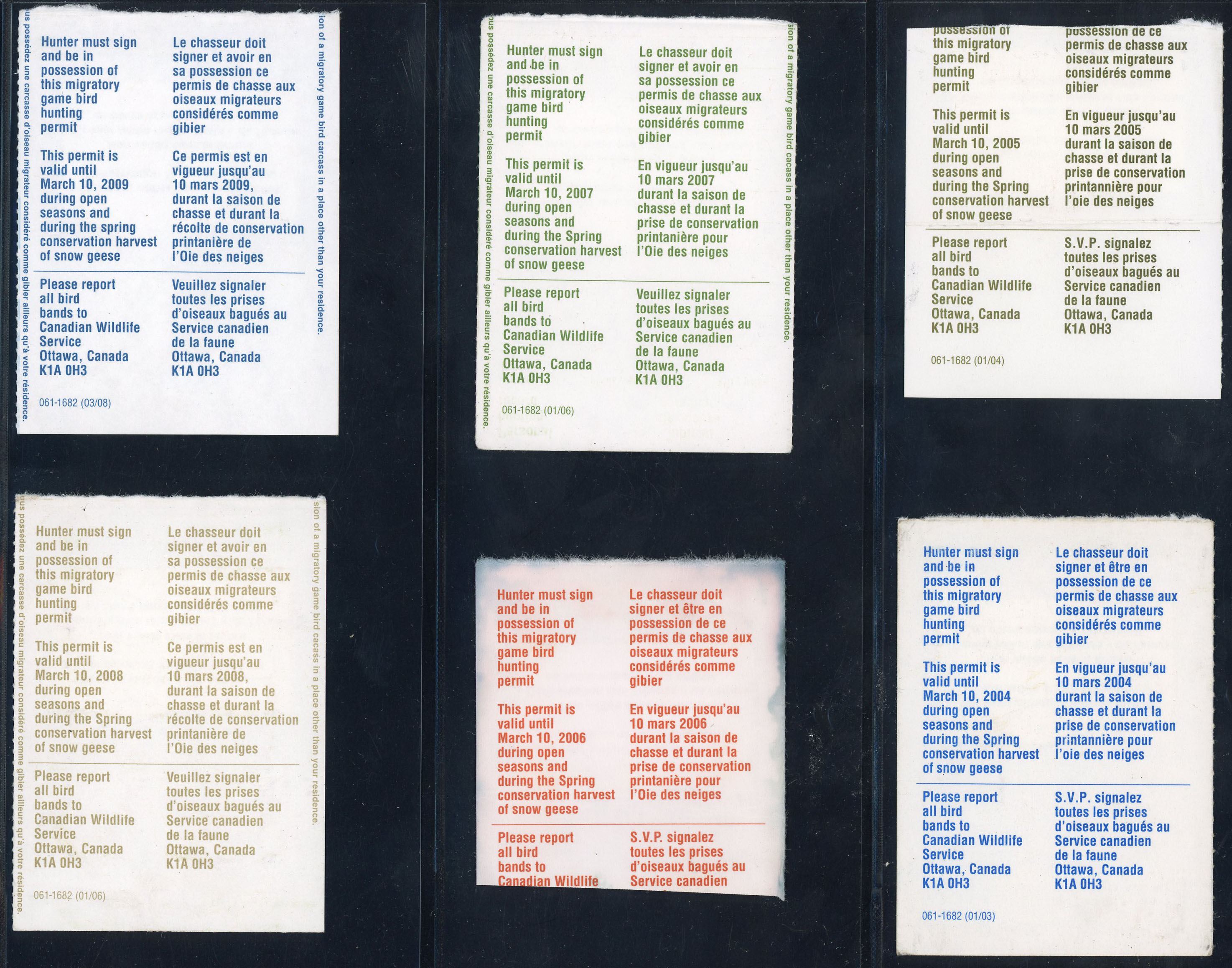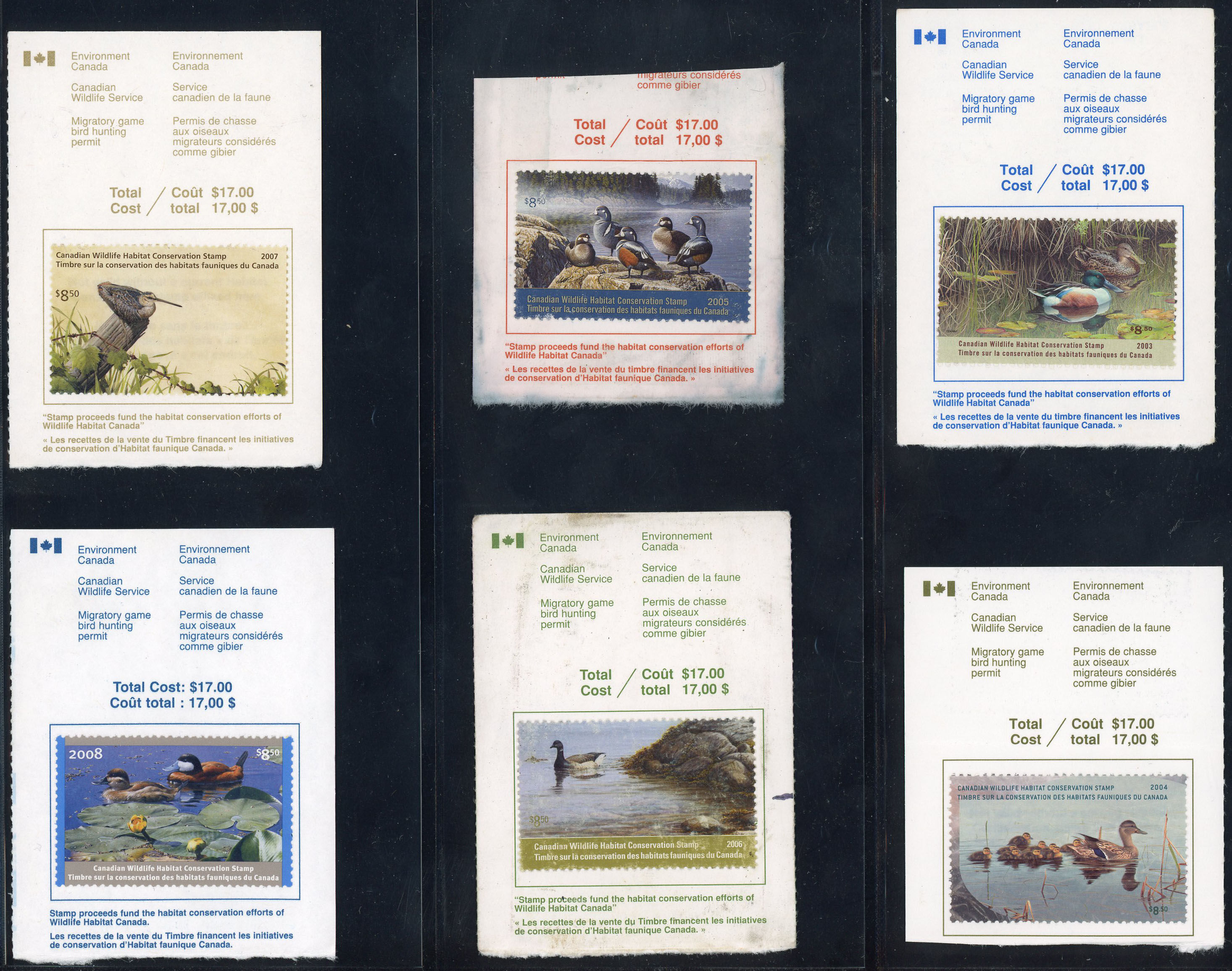 6 different stamps on licences. FWH19-FWH24 (2003-2008). Catalogue value $150.00.