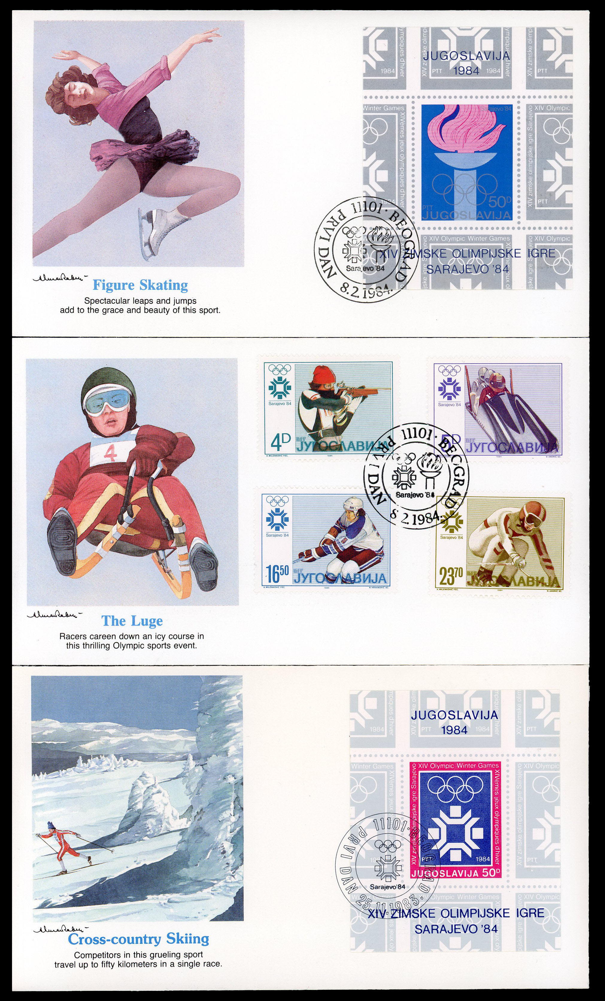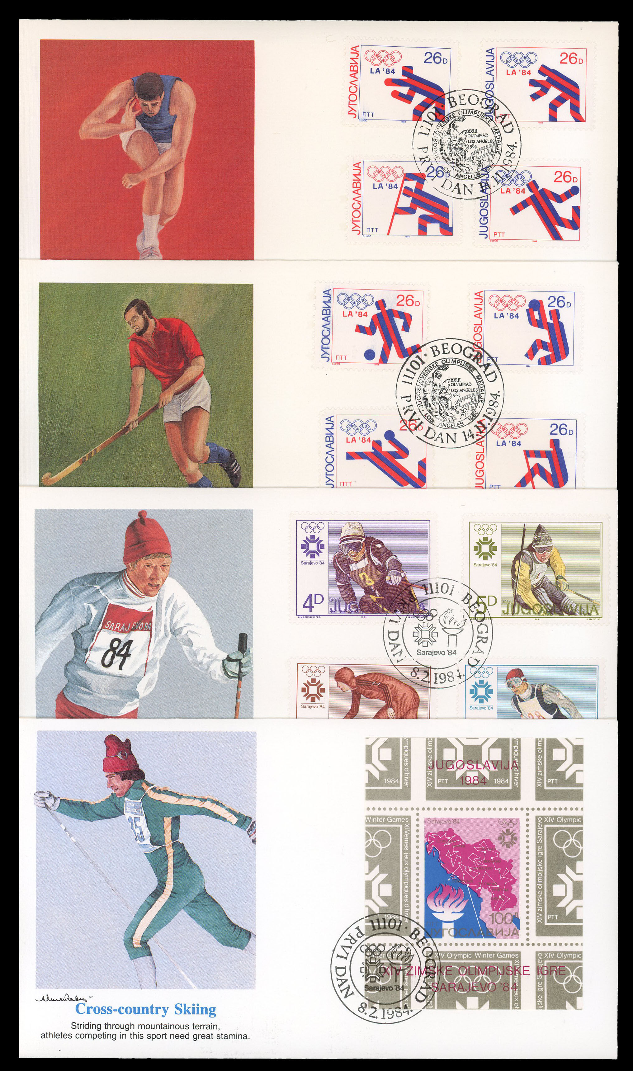 Collection of 7 Fleetwood first day covers with Olympic stamps and cachets.
