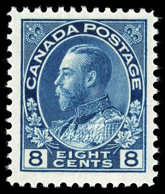 Extremely spacious margins, Very Fine centring, fresh and light hinge King George V "Admiral" (1925) 8¢!