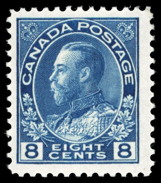 Lovely, fresh, Mint - Very Fine Never Hinged, Canada #115 King George V "Admiral" (1925) 8¢ - Dry printing.