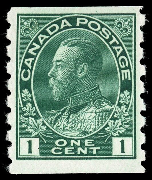 Canada #125ii - King George V "Admiral" Coil (1912) 1¢ with the striking Blue Green Shade.