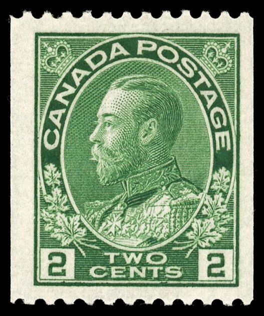 Very lovely & fresh coil single Mint - Very Fine clear hinged #133 King George V "Admiral" (1924) 2¢. Excellent way to get this expensive stamp without having to pay the huge Never Hinged Premium.