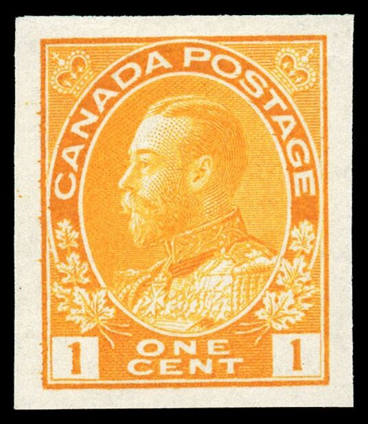 Canada #136 Excellent centring, Mint Never Hinged & fresh 1¢ Imperforate King George V "Admiral".