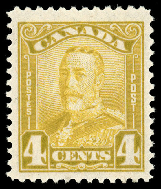 Canada #152 Mint - Extra Fine Never Hinged King George V "Scroll'' Issue (1929) 4¢! Upper Margin is JUMBO