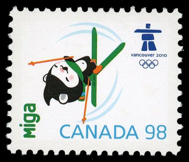 Miga Mascot for Paralympic,98¢ , Single from Souvenir sheet, Canadian stamp # 2305c from Olympic Emblems and Mascots for Vancouver 2010 Issue.