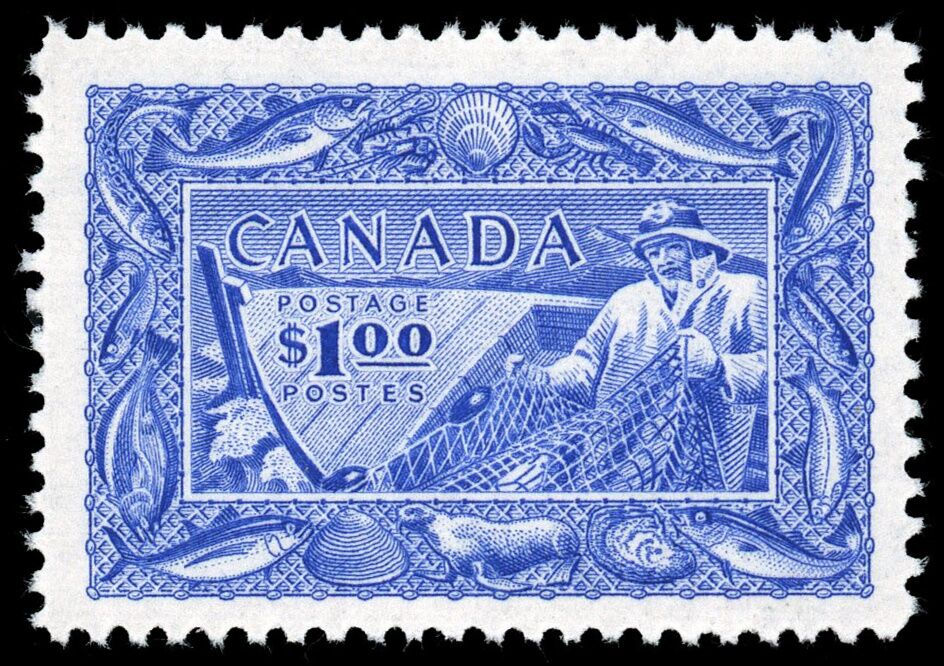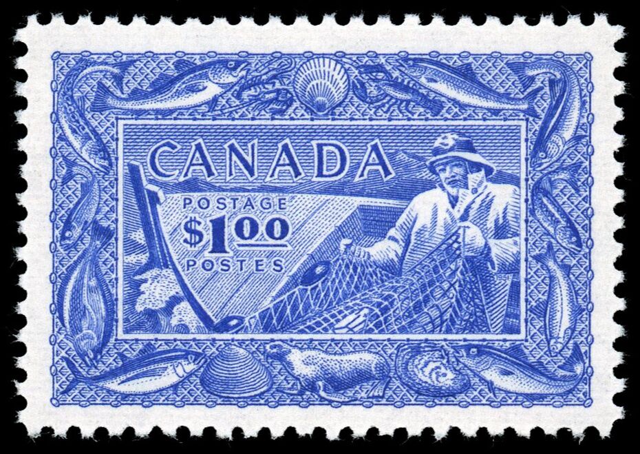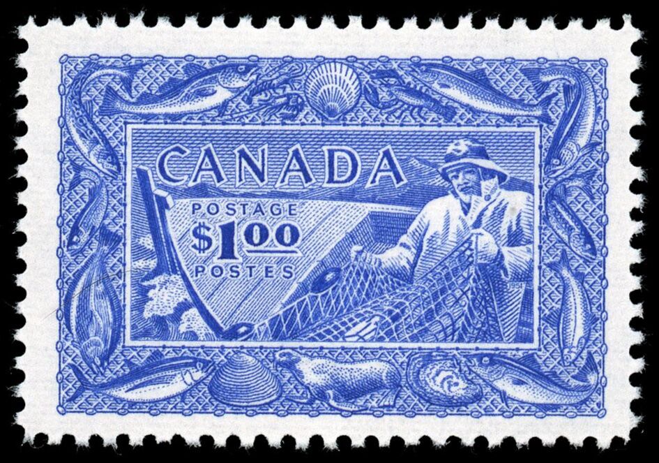 Canada #302 Fisherman (1951) $1 - Mint - Very Fine, Never Hinged & fresh.