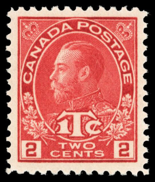 Mint - Very Fine Never Hinged King George V - War Tax (1916) 2¢ + 1¢ - Die 1 with the scarcer rose-red shade (#MR3b)!