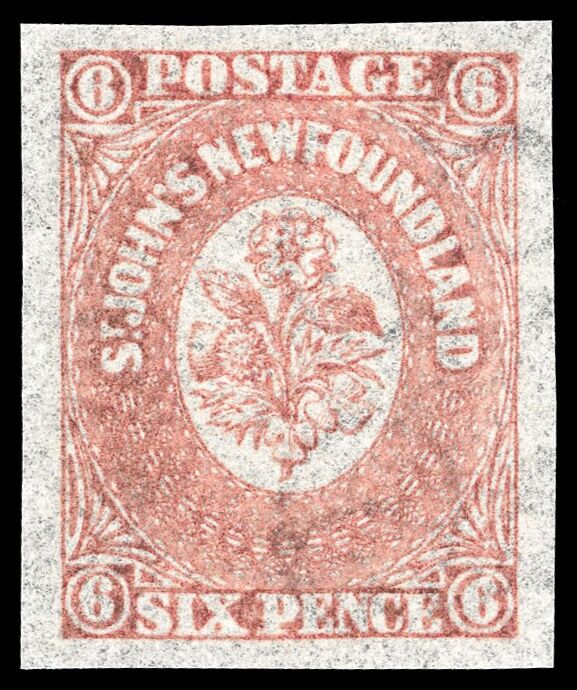 Mint - Very Fine Never Hinged with spacious margins of Newfoundland Stamp #20ii - Pence (Third Issue) (1861) 6d with the Watermarked variety!