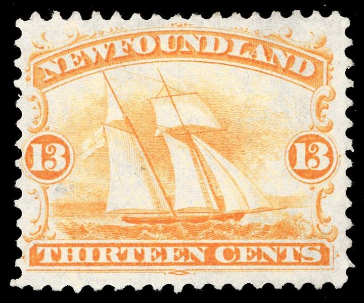 Very fresh Newfoundland Stamp #30 - Ship (1866) 13¢ Mint - Very Fine No Gum! Very nice appearance.
