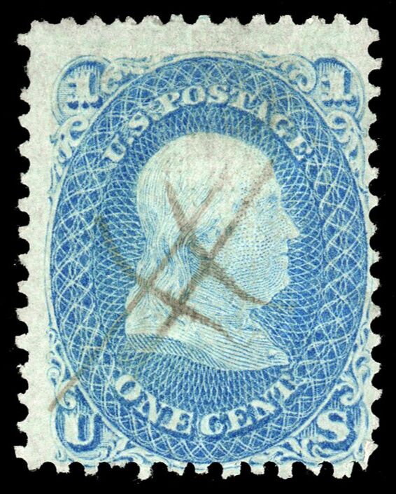 Beautiful, fresh and lightly pen-postmarked US #92 - Franklin (1867) 1¢ - Grill F!